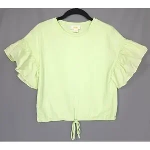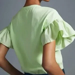 Anthropologie Maeve Top Size XS English Factory Ruffled Drop Shoulder Lime