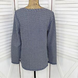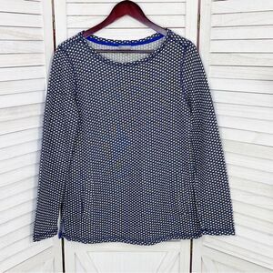 Talbots Polkadot Knit Kangaroo Pocket Pullover Top Blue White Small
