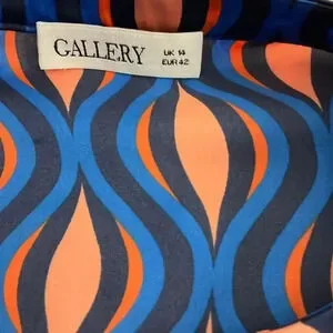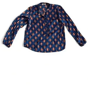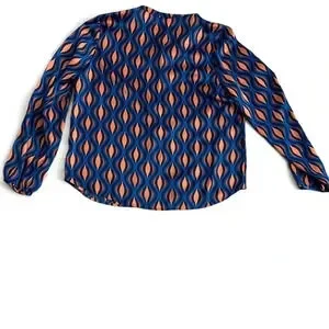 Gallery Navy Retro Style Long Sleeves Printed Pattern Blouse UK 14