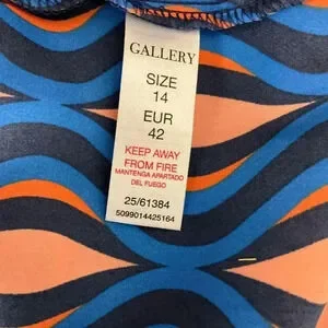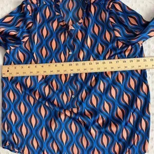Gallery 25/61384 Navy Retro Style Long Sleeves Printed Pattern Button-up Blouse UK 14