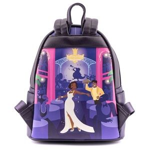Don’t forget to celebrate your hard work! You’ve been “almost there” for a while and now’s the time to treat yourself with the Loungefly Disney Princess & the Frog Tiana’s Palace Mini Backpack. Tiana’s Palace lights up the bayou background both with bright colors and the light pouring out of the windows. On the back you can see Princess Tiana and Prince Naveen walking among the tables. Any Princess Tiana fan would love this beautiful backpack.