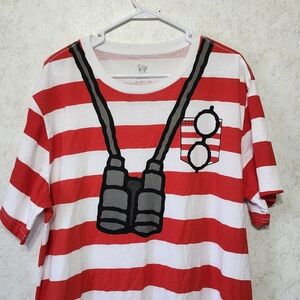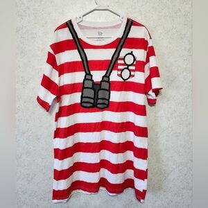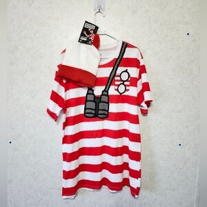 Where's Waldo Short Sleeve T-Shirt with Beanie Striped Costume Cosplay Fan New