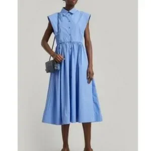 CO EXAGGERATED SHOULDER SLEEVELESS SHIRT DRESS