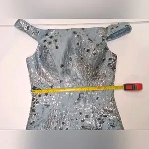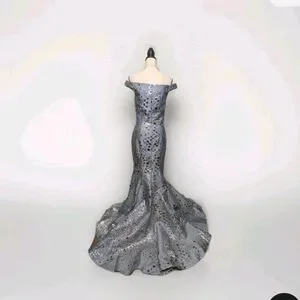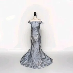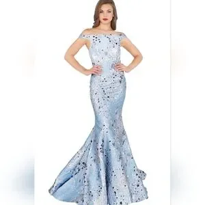 Sparkling off-the-shoulder seamed mermaid gown designed by Mac Duggal. This ravishing mermaid gown by Mac Duggal is dazzling garb to wear when you have an evening affair to attend. ToppedSparkling off-the-shoulder seamed mermaid gown designed by Mac Duggal by off-the-shoulder bodice, the dress flows smoothly, transitioning into a flared mermaid skirt around the knees. A gushing sweep train finishes the design of this gorgeous gown.