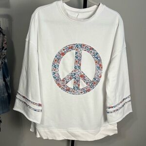 VGUC Peace, Love, and Flowers Peace Sign Top White Sweatshirt Oversized Medium