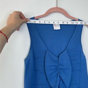 This elegant top by RED Valentino features a vibrant blue hue and a stylish ruffled design. The sleeveless tank top is crafted from a lightweight fabric, perfect for warm weather, and showcases a rounded neckline for a feminine touch.