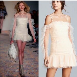 Alice McCALL 'All Things Nice' dress has been cut from a sheer, delicate mesh fabric in a diamond patterned design. Ruching throughout the bodice helps flatter your figure whilst the raw cut ruffles tracing the long sleeve and fluted hem give this mini dress a fun and flirty silhouette.
