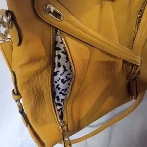 Elegant mustard shoulder bag with tassel accents. Ideal for everyday style. lots of pockets for storage and large main opening for easy access. This bag is very gently used and from a smoke-free home.