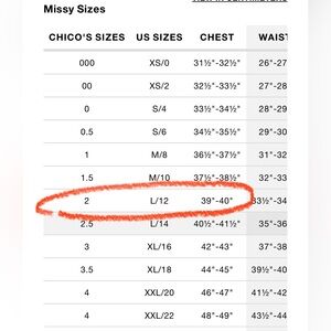 🌟 Chico’s size 2 ( equivalent to women’s size 12 or Large)