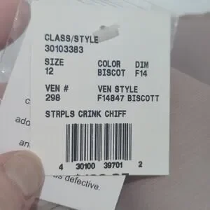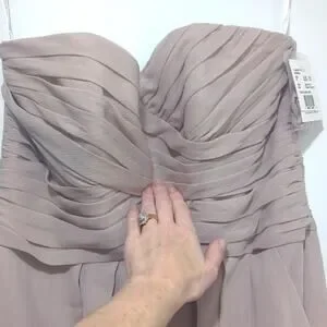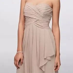 David's Bridal Strapless Crinkle Chiffon Dress Shade Biscot Women's Size 12