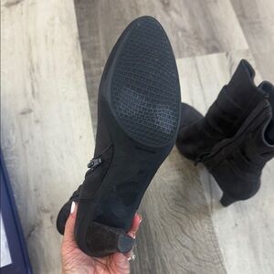Elevate your style with these chic black ankle boots. Perfect for any occasion, these boots offer both comfort and elegance.