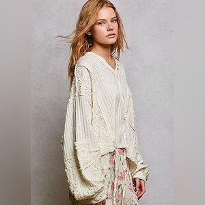 Elevate your style with this elegant cream textured top. Perfect for any occasion.