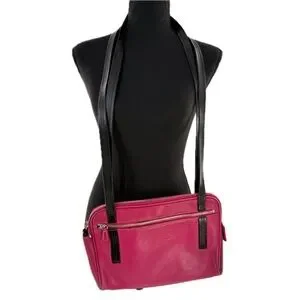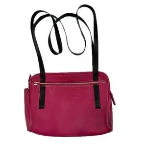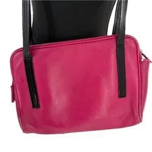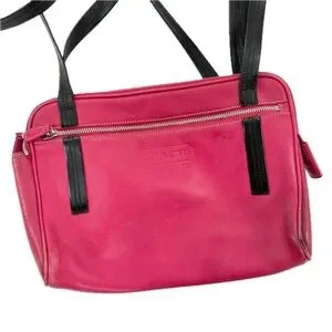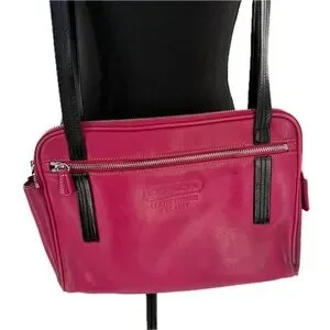 Vintage Coach Leatherware Berry Pink & Black Leather Messenger Travel Bag Style 5068