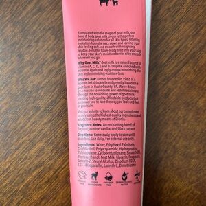 Experience the nourishing power of Hand & Body Goat Milk Cream. This pink moisturizing treatment is perfect for dry, thirsty hands and body. Enriched with goat milk, it provides balanced hydration and care. Each 3.3oz.