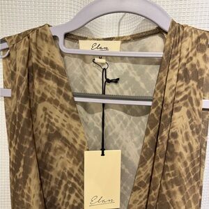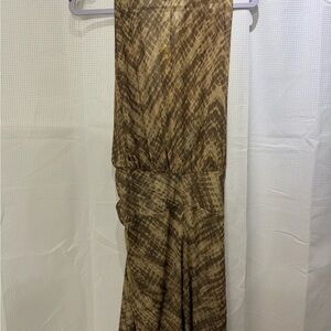 Stunning tan mini dress/coverup with halter neckline. Size M. It’s a bit see through bc it is labeled as a swim cover up. Beautiful material