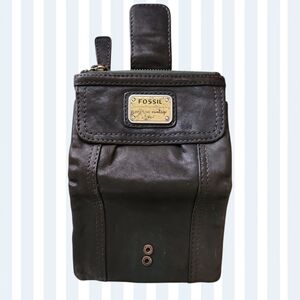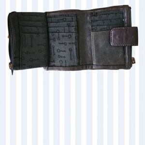 Fossil leather wallet in rich dark green brown.