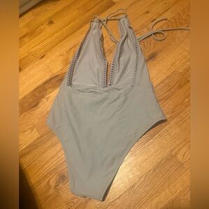 Aerie Gray Plunge Halter One Piece Swimsuit Size M
