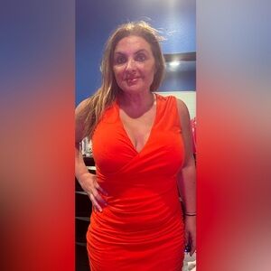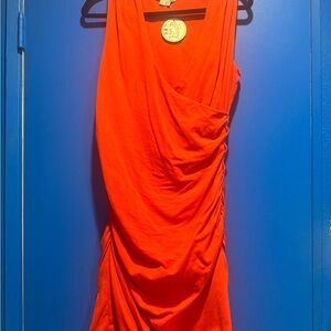 Boden Bold Orange ruched midi dress