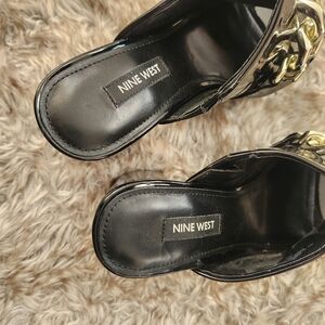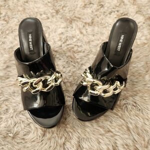 Nine West Relee Slip-on Rounded Open Toe Chain Detail Platform Sandals Black 6.5