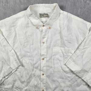 Kenny Flowers Shirt Mens 3XL White 100% Linen Short Sleeve Button Down Pocket