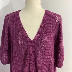 NWT DRESS BARN WOMAN 1X MELANGE PLUM CROCHET SWEATER VEST V-NECK PULLOVER