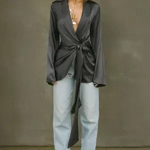 Joah Brown Silk Wrap Blazer - Small