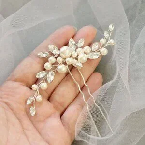 Wedding hair pins are made of alloy, pearl and crystal rhinestone.