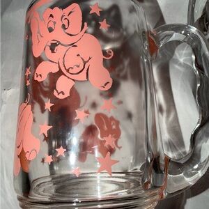 Vintage Hazel-Atlas Dancing Pink Elephant Beer Handled Mug Glass MCM Set Of 2