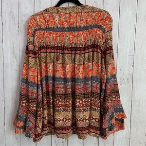 Karyn Seo Woven Mona XL Western Boho Blouse Top Long Sleeve Tassle Rayon NWT