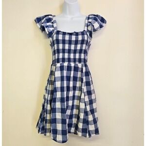 Old Navy Blue & White Gingham Dress Size S Smocked Flutter Sleeve Cottagecore
