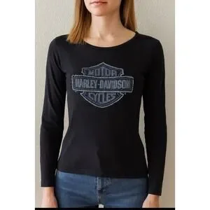 Harley Davidson Motor Cycles Long Sleeve T Shirt Womens Small Black