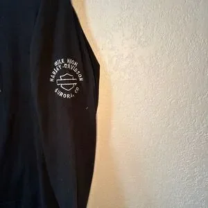 Keywords: Harley Davidson, Motorcycles, Long Sleeve T-Shirt, Womens, Black, Small, Graphic Tee, Biker, Casual, Vintage, Aurora Colorado, Mile High