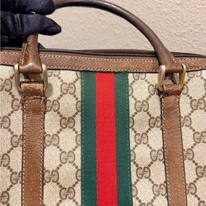 Gucci Boston Bag GG Supreme Monogram Canvas Signature Sherry Line Web Stripe
