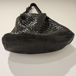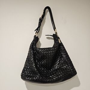 Discover the chic elegance of this black woven hobo bag. Perfect for elevating any outfit with its stylish design.