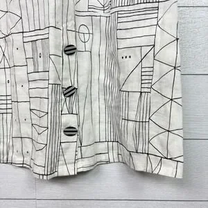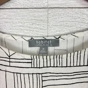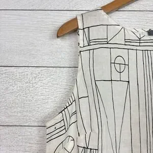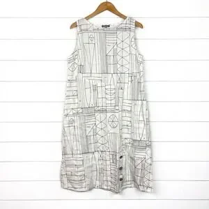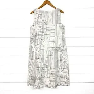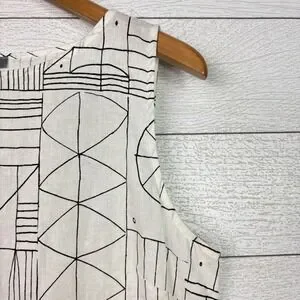 Habitat White Geometric Abstract Print Sleeveless Dress Linen Cotton Medium