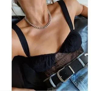 Elegant black lace bodysuit with sheer detailing. Perfect for a night out.