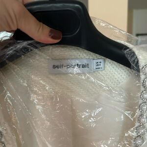 Self-Portrait Ivory Long Sleeve Dress with Pearl Accents