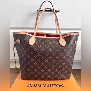 Louis Vuitton Neverfull MM Monogram with Cerise interior. Carried once and has no signs of wear at all. Includes original box and ribbon, gift receipt packet and dust bag.