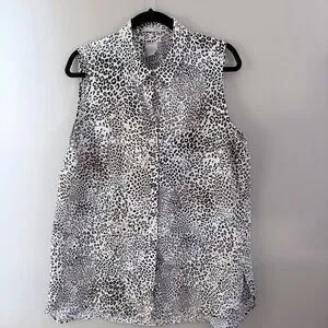 Chico's No Iron 100% Linen Sleeveless Leopard Print Tunic Top 3 XL