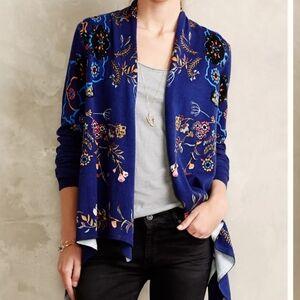 Anthropologie × Sleeping On Snow Botanical Garden Cardigan Sweater Blue Floral M