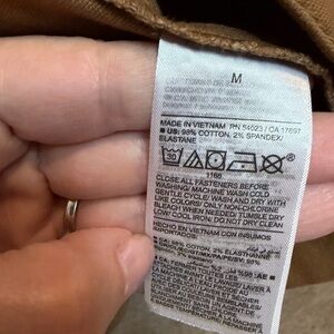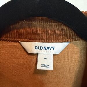 This is a classic Old Navy Tan colored Canvas Barn Jacket with a tobacco colored corduroy collar. The garment-washed fabrication is primarily cotton and designed to soften with wear.