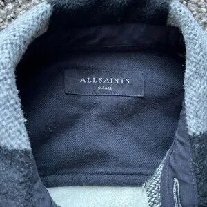 Allsaints Black White Checkered Flannel Overcoat Mens Medium Grunge Business