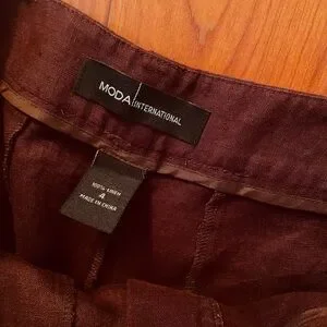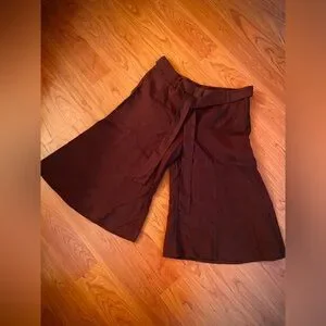 VTG Y2K 100% Linen Crop Pants Extra Wide Leg Gaucho Culottes Brown Belted Moda 4