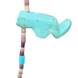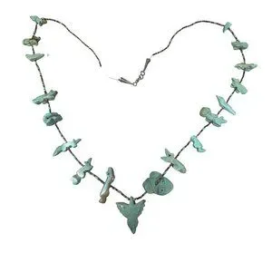 Vintage Zuni Carved Turquoise Thunderbird Fetish Heishi Beaded Necklace 32" READ