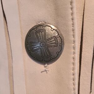 Double D Ranch Cream Leather Fringe Jacket with Blue Embroidery Western Style