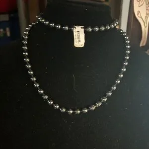 This elegant silver beaded necklace adds a touch of sophistication to any outfit. Perfect for any occasion. 2-112. Has some weight to it.