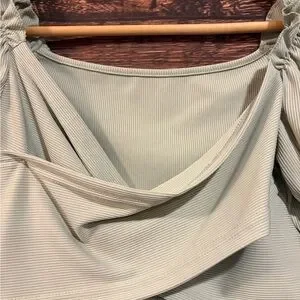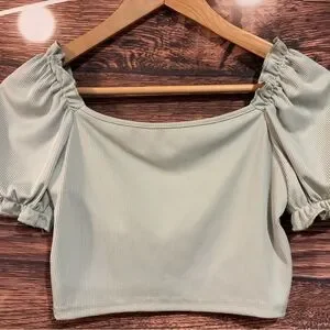 SHEIN Puff Sleeve Crop Top - Light Gray