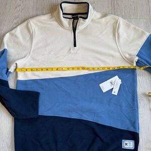 Super cool Hurley Sweatshirt! Mesa Windchill with large color blocks. 1/4 zip. Fleece. Sized at a men's Large (L). Measures approximately 23" Pit-to-Pit, 28" Top-to-Bottom, 26" Shoulder-to-Sleeve End. Brand new with tags!