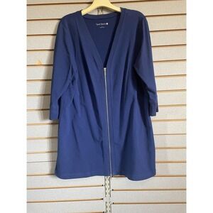 Sport Savvy Long Sleeve Zip Up Knit Jacket Blazer Long Shirt Blue L EUC
