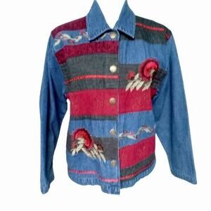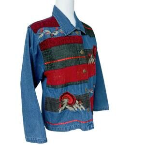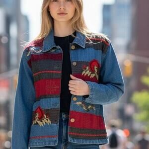 Vintage Patchwork Jean Jacket Blazer 👖❤️💛Embroidered Womens 8 Retro Coat